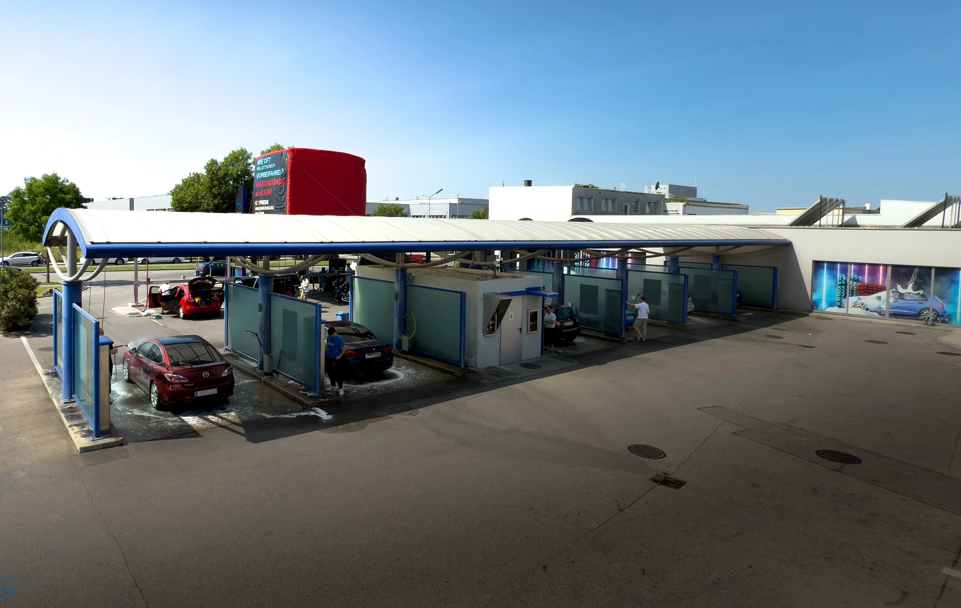 Unsere SB-Waschplätze bieten Ihnen volle Kontrolle bei der Reinigung – schnell, flexibel und ganz nach Ihrem Anspruch. Mit moderner Technik, Hochdruckreinigern, Warmwasser, Heißwachs und starken Saugern reinigen Sie Ihr Fahrzeug effizient selbst.